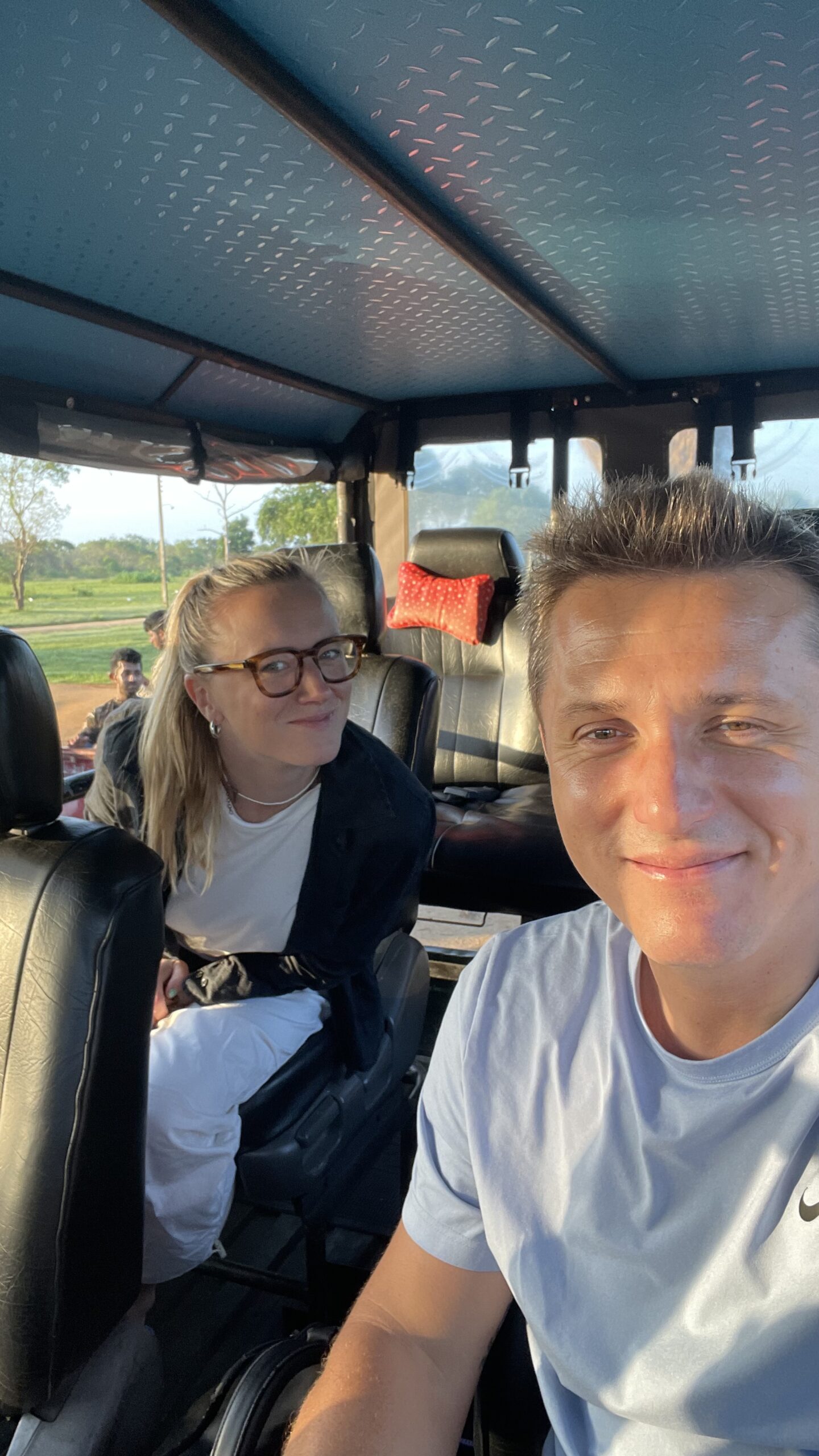 Le trajet depuis la côte prend environ 1h30 à 2h selon d’où tu pars. À l’entrée du parc, notre chauffeur nous a mis en contact avec un guide local qui connaît le parc comme sa poche et nous a rejoint dans la jeep. C’est comme ça que ça fonctionne en général : le chauffeur privé t’emmène jusqu’à l’entrée, et là on passe dans une jeep de safari réglementaire avec un guide agréé.